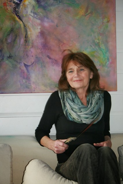 Ik schilder met acryl- en olieverf, en gebruik ook krijt, inkt en goudverf. Laag over laag, maar ik noem het niet organisch. Wel werk ik vanuit een gedachte. Ik wil bij voorbeeld een rivier schilderen, met alles wat daarin zwemt en daarbij hoort. Onder andere een vrouw, ik zwem zelf in die rivier, in de stroom van het proces. Mijn hand gaat over het doek vanuit die gedachte. Ik schilder de vormen die daarbij horen en als er, door die lagen een harmonie is ontstaan is, geeft het resultaat mij het gevoel van verwondering of openbaring weer: dat wat de rivier oproept, zit dan ook in het schilderij.”