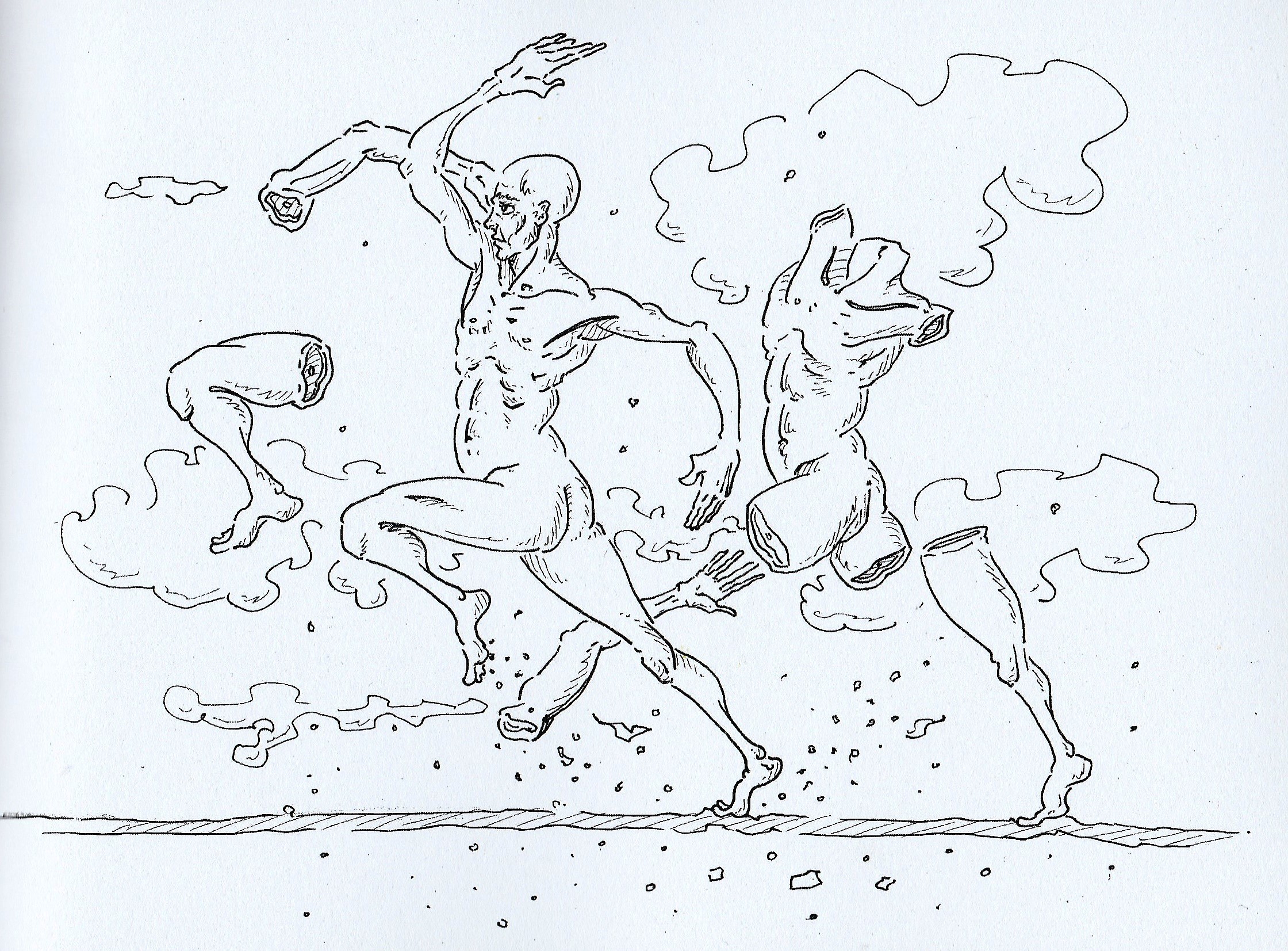 Kim is kunstenaar. Kim tekent. Veel. Op een gegeven moment begon hij een verhaallijn te zien in de lijnen die hij elke dag maakte. Hij ging er een boekje van maken en vroeg mij het voorwoord te schrijven. Dat deed ik graag. Dat was bijna een jaar geleden en ik snap niet dat ik dit stuk hier nog niet eerder heb geplaatst, maar goed, hier is het. Het boek raad ik – uiteraard – van harte aan en is gelukkig nog steeds te koop bij Boekscout. Kim is ondertussen ‘alive and well and working on a more ambitious project’.