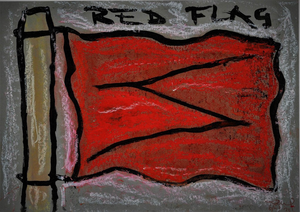 Red Flag / Rode Vlag: ink and pastel (oil and soft) on grey A4 paper 250gr. This one is made in April, the others in May 2023.