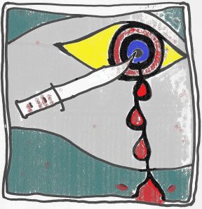 Het zal de avond van 20 augustus geweest zijn. Je ziet haar niet, je hoort haar niet. Totdat je het licht uitknipt en de vermoeide ogen sluit. Dan is ze plots vlak bij je hoofd en ze zoemt het uit. Je wappert wat – de zoem verdwijnt. En komt weer terug. Je doet het licht weer aan: geen mug te zien, niets te horen. Ze zit verstopt op het donkere gordijn. Telkens als je bijna slaapt, komt ze weer overvliegen als een straaljager. Dit is guerrilla. Slapen is er niet meer bij. Alles jeukt en je bent nog niet eens gebeten. Dan voel je een prikje en slaat er hard op, met vlakke hand. Boven het suizen in je oor klinkt triomfantelijk weer haar muggezoem.