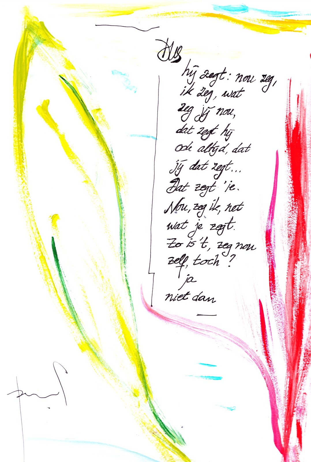 Elk project (kunstje, artikel, leven), van korte of langere duur, is als een Japanse kalligrafie: één doorlopende beweging en elke hapering, verslapping van de focus op het eindresultaat, veroorzaakt een weeffout daarin.